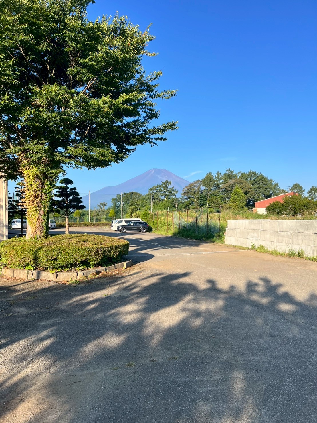 澄み切った青空、雄大な富士山、8月なのに夜露で濡れたハイエース、
